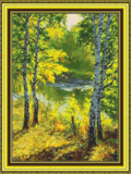 Алмазная вышивка «Красивые берёзки у речки» 30x40 см